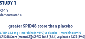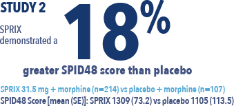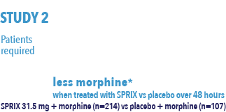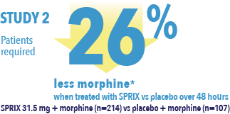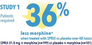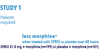 Postoperative patients using SPRIX required less morphine vs the placebo group2,3,4