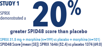 The efficacy of SPRIX® (ketorolac tromethamine) Nasal Spray was demonstrated by a statistically significant reduction in pain vs placebo in an acute pain study of post-abdominal or -orthopedic surgery patients and in a second study of post-abdominal surgery patients2,3,4,5